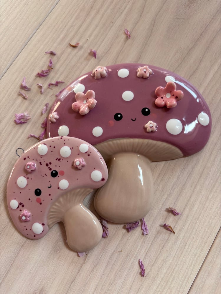 Super cute wall hanging mushrooms/toadstool. Comes with a hole on the back to mount on your fav autumn themed wall. Size approx 9.5 cm in height