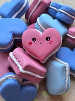 Each macaron is carefully sculpted from clay and kiln-fired for durability. The contrast between the velvety matte exterior and the smooth, glassy center creates a beautiful tactile and visual balance. Subtle texture along the edges gives them that realistic, freshly-made charm.